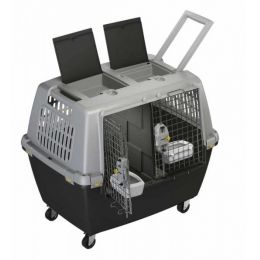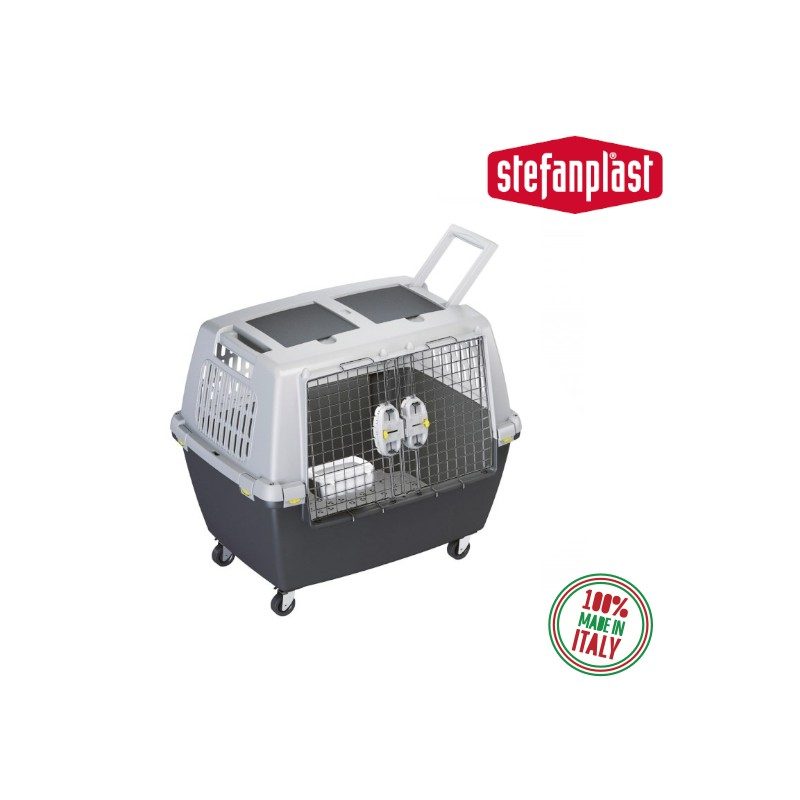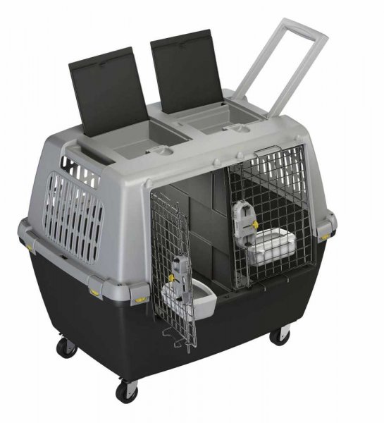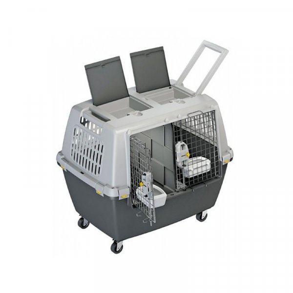 Přední otočná kolečka s brzdou zajišťují bezpečný a snadný pohyb. K přepravě psů do hmotnosti 0kg