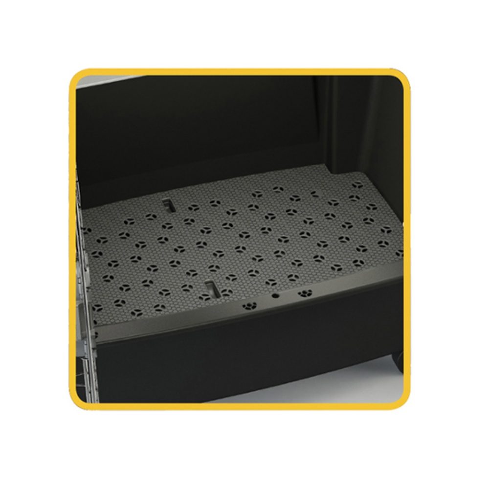Interiér je vybaven drenážní a protiskluzovou podložkou. Přední dvířka mají dvoubodový systém uzamčení.