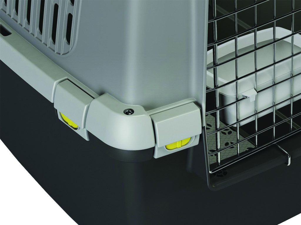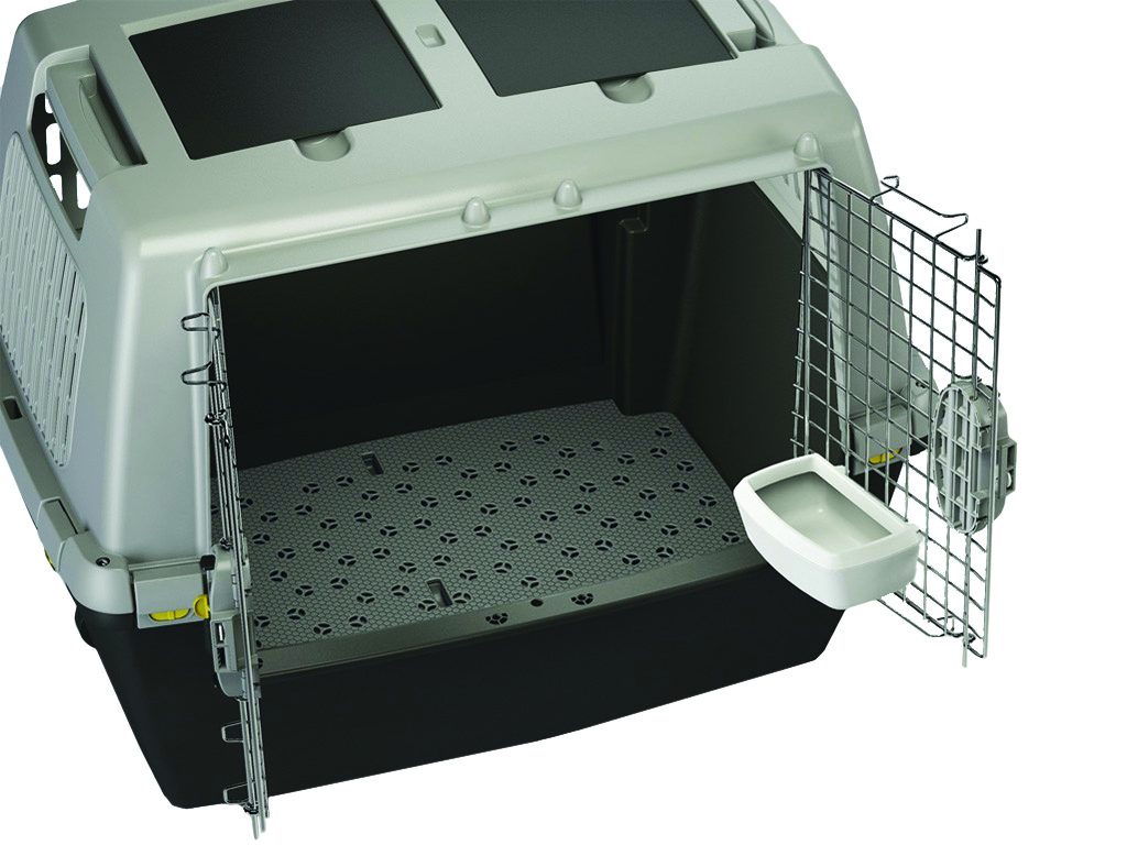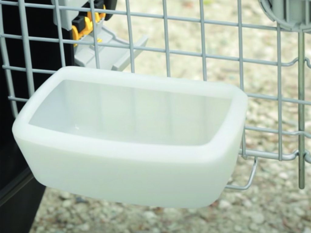 Přenoska je vybavena miskou na vody a úložnými prostory pro příslušenství. Velká rukojeť je začleněna do horní části a lze snadno vytáhnout.