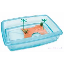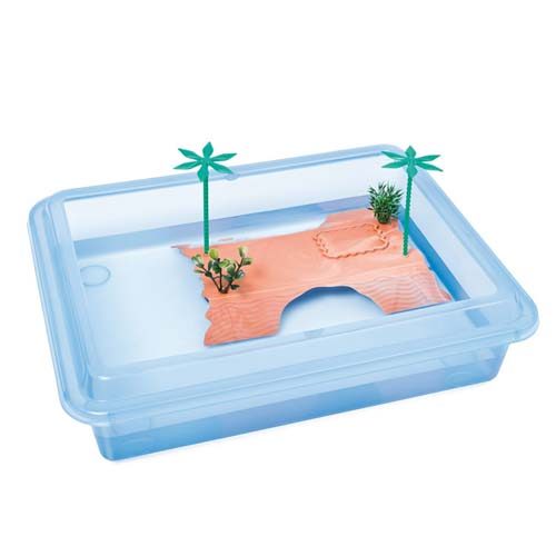 Do terária je možné vložit součásti, které v napuštěné vodě vytvoří souš, kde může želva odpočívat.