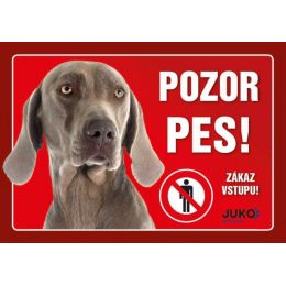 Bezpečnostní Plastová cedulka/tabulka Pozor Pes - Výmarský ohař