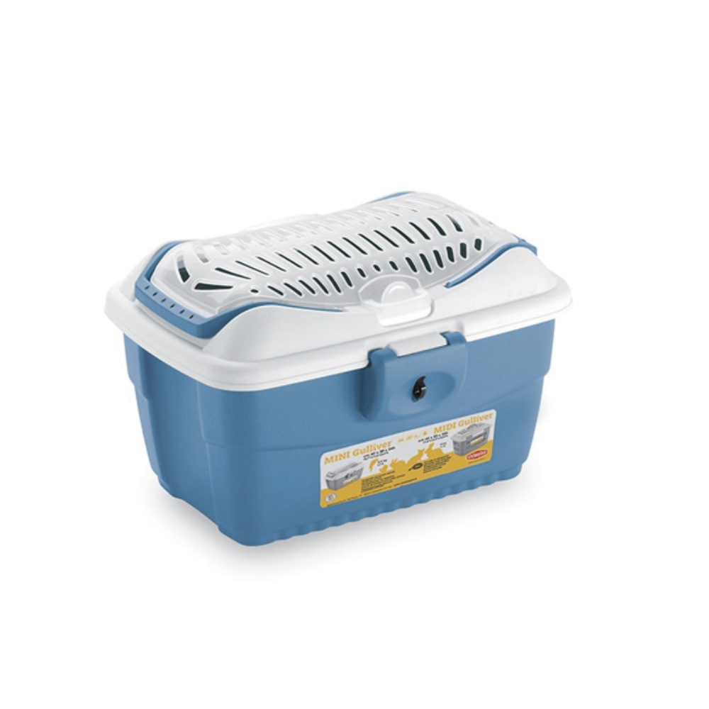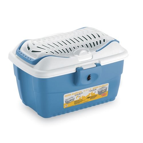 Mini Gulliver je velice kvalitní plastová přepravka pro hlodavce (zakrslý králíček, morče, apod.....). Výhodou je bezpečné zajištění dvířek a popruh pro snazší přenášení. Horní část přepravky je otevírací, aby byla manipulace se zvířetem snazší. Barva: bílá, modrá, Materiál: Plast