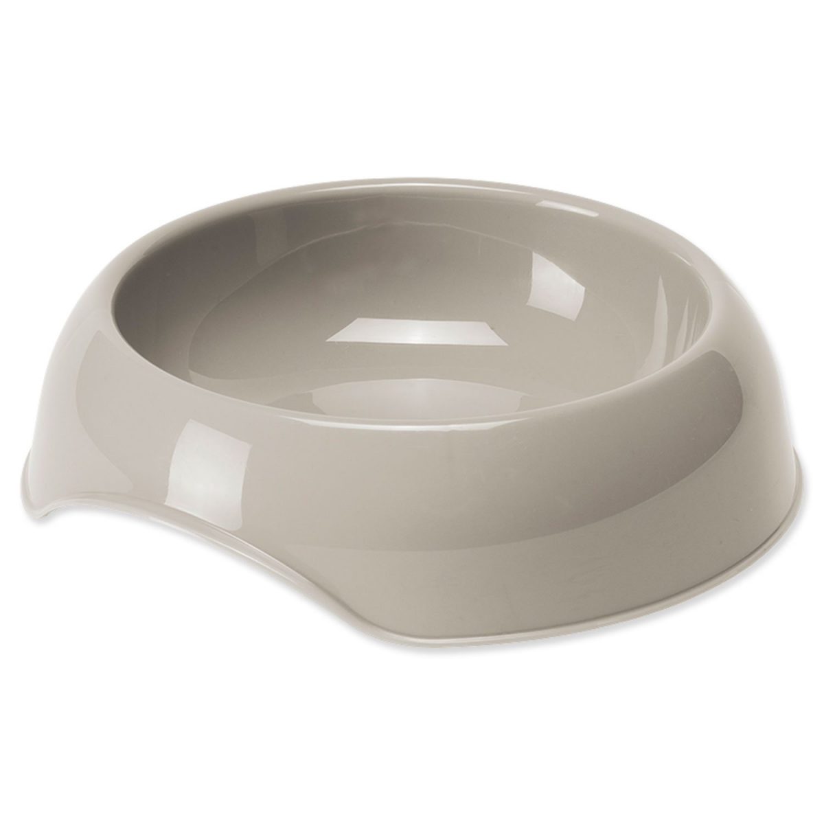 Plastová miska se zaobleným tvarem, který zabraňuje ulpívání potravin v rozích.