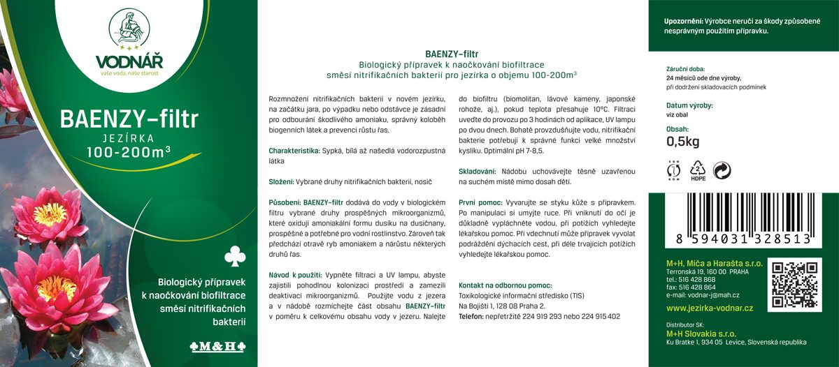 Vodnář Baenzy Filtr 100-200m3 0,5 kg