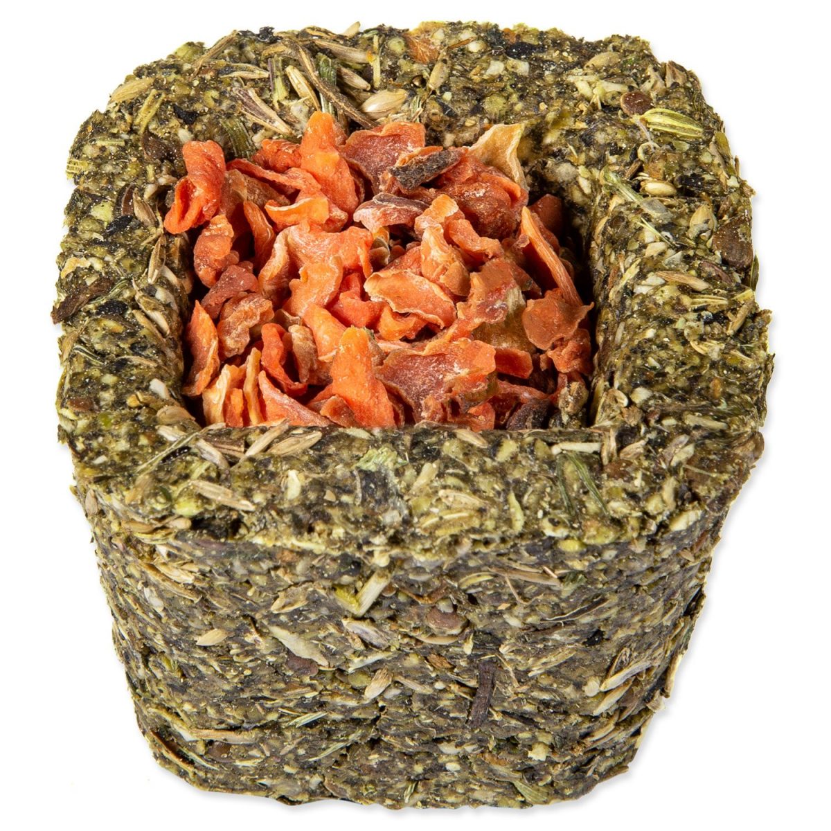 Košíčky plněné sušenou zeleninou nebo okvětními lístky. K výběru jsou 3 druhy sušené zeleniny (mrkev, pastinák, cuketa) a 3 druhy květů (okvětní lístky z růže, květy chrpy a květy z měsíčku lékařského). Díky svému bezobilnému složení a přidaným bylinkám se budou vaši mazlíčci na tyto košíčky vždy těšit a pokaždé je můžete překvapit jinou náplní košíčku.