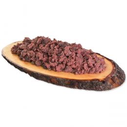 Složení: 85% maso a orgány (59% krocan, 26% buvol), 9% vývar, 4% plátky růží, 1% minerály, 1% lněný olej.