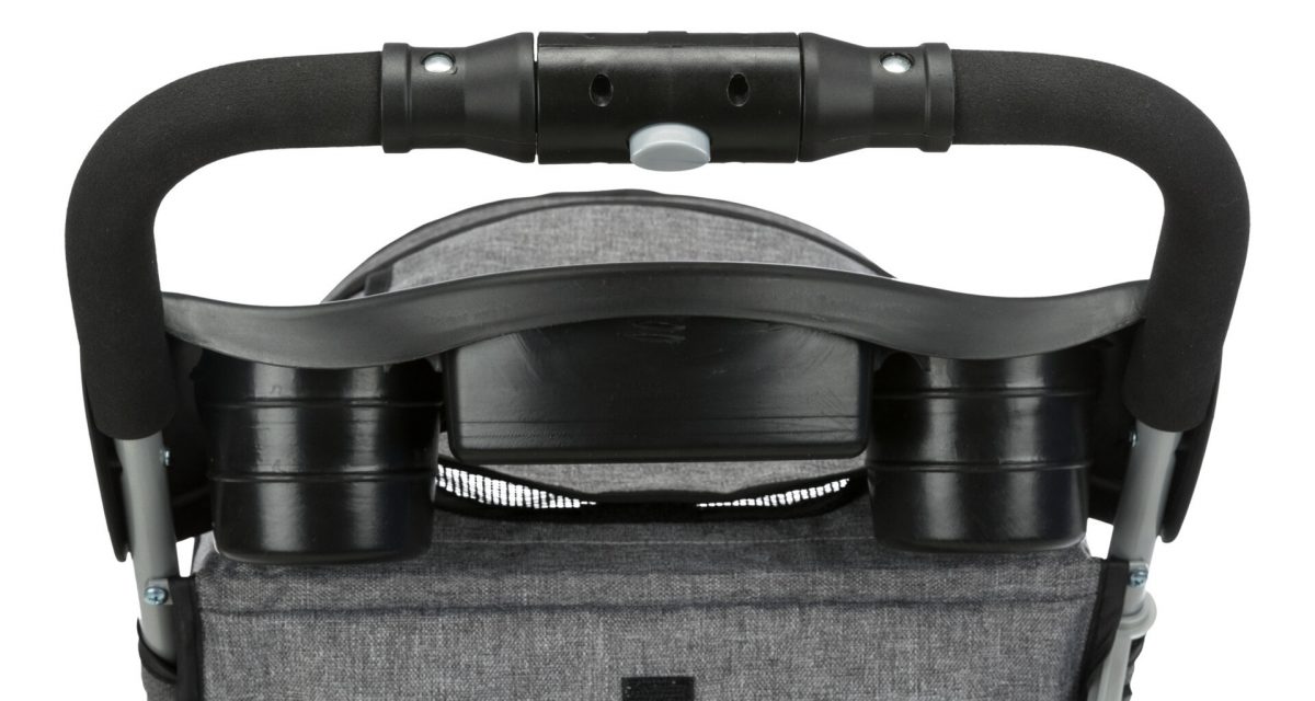 - kočárek má polstrovanou rukojeť, držák na kelímek a košík ve spodní části