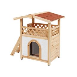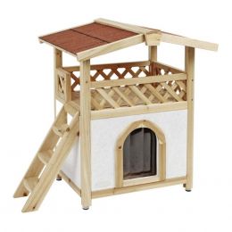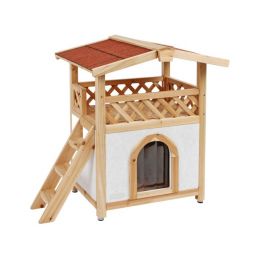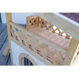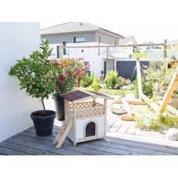 Zateplená kočičí bouda Tyrol Alpin s terasou je stylový pelíšek pro kočku vhodná pro celoroční využití, v zimě chrání před mrazy, v létě před horkem. Materiál: Dřevo