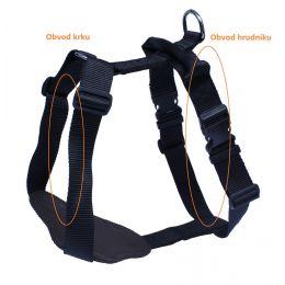 Postroje jsou vyrobeny z velmi pevného popruhu, pro pohodlí pejska jsou vybaveny náprsenkou podšitou odolným filcem. Barva: černá, Druh materiálu postroje: Nylonový, Typ postroje: Bezpečnostní
