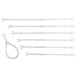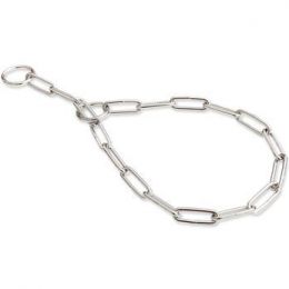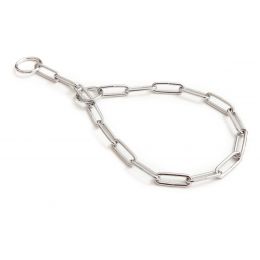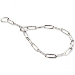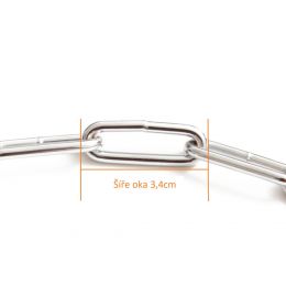 Řetízkový stahovací obojek s velkými oválnými oky je vyroben z pevného materiálu. Všechny jeho díly jsou svařeny v půlce délky a tak obojek dosahuje maximální pevnosti.