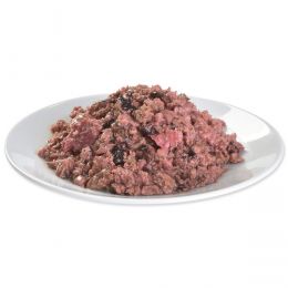 Složení: 85% maso a vedlejší výrobky živočišného původu ve filetech (8% jehně), 9,6% masová šťáva, 1,5% byliny a ovoce (hřebíček, citrusy, rozmarýn, kurkuma), 0,5% borůvky, 1% minerály, 1% lososový olej, 0,5% mannan-oligosacharidy, 0,5% frukto-oligosacharidy, 0,4% inulin.