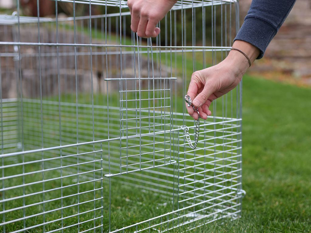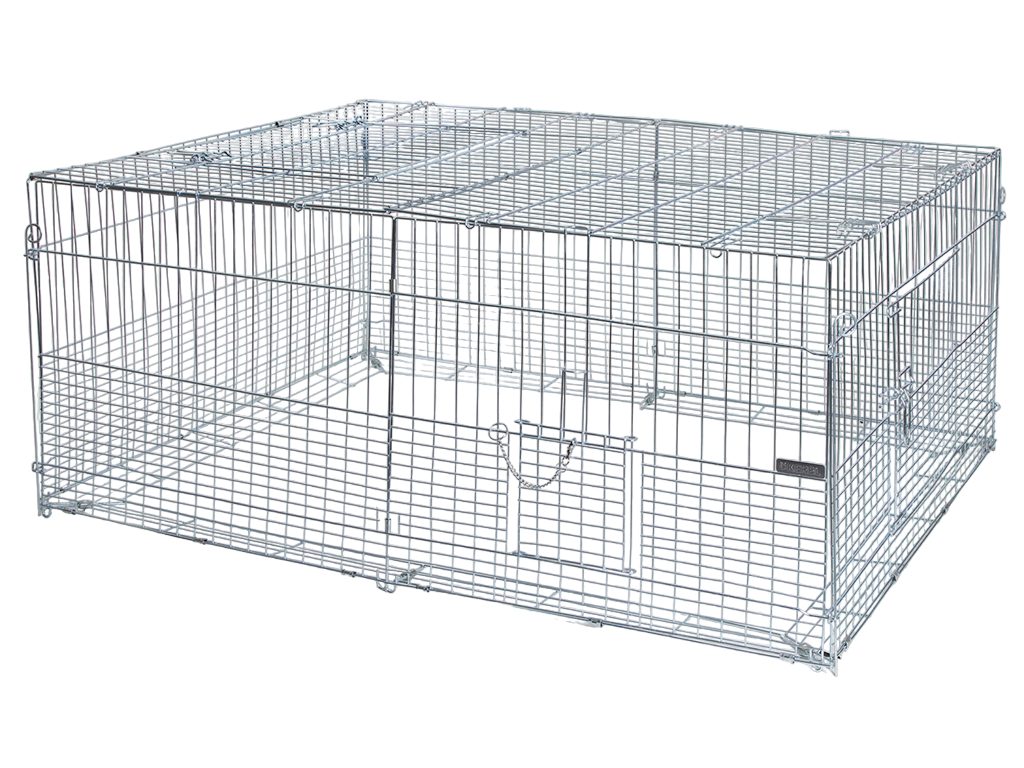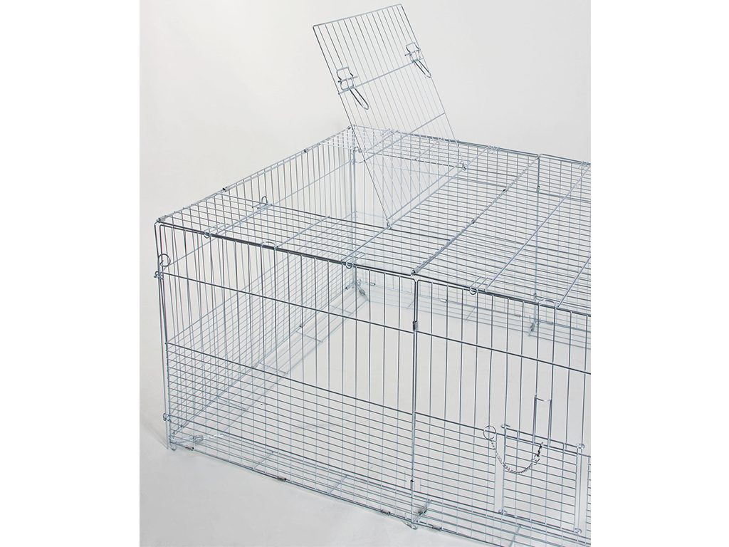 Pozinkovaný výběh pro králíky, jiné hlodavce a drůbež, který je především vhodný pro jejich mláďata, díky hustší mříži ve spodní části. Materiál: Kov