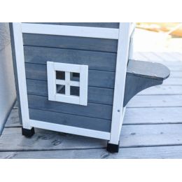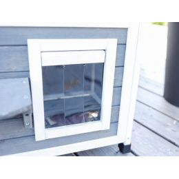 Bouda pro dvě kočky Family - dvoupatrová bouda pro kočky s odklápěcí bitumenovou střechou a výškově nastavitelnými nožkami. Bouda má 2 dvířka s odnímatelnými transparentními závěsy a v každém patře okno z plexiskla. Materiál: Dřevo