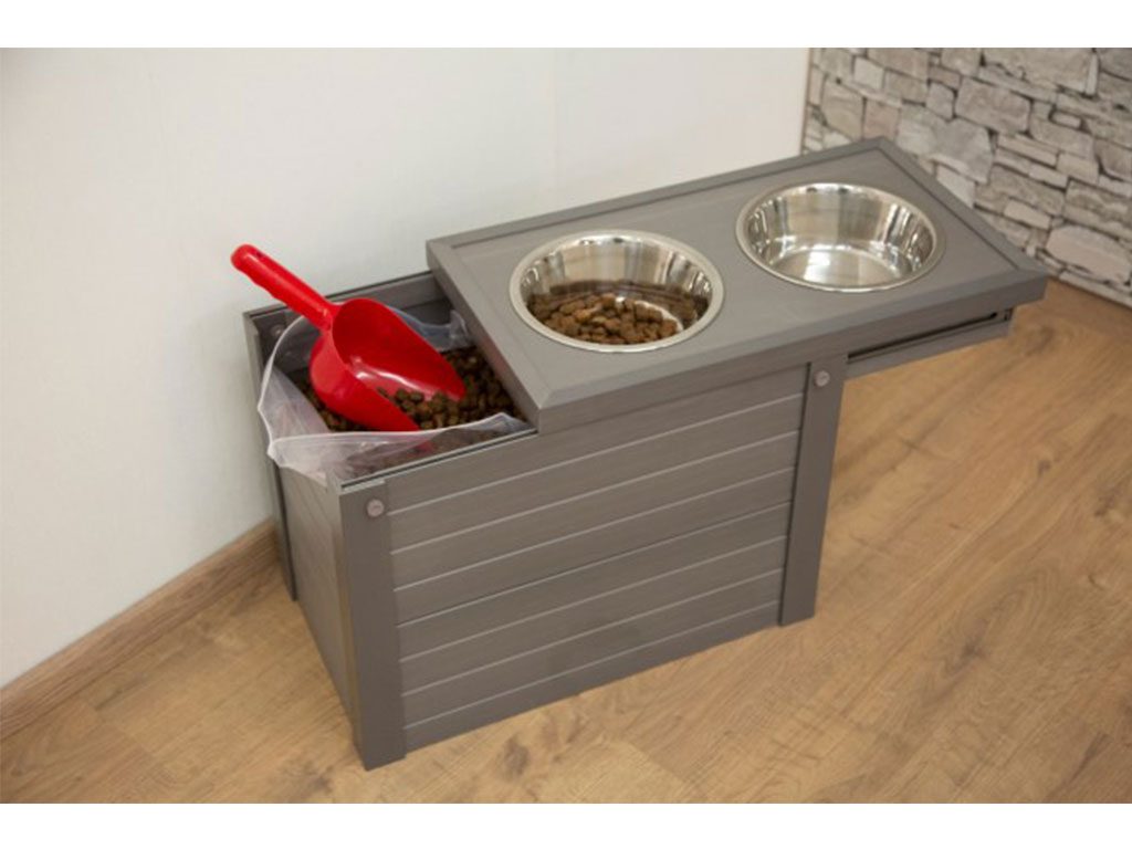 Praktický stojan na krmení a vodu pro větší plemena psů se zásobníkem na granule. Materiál: Nerez, Plast, guma