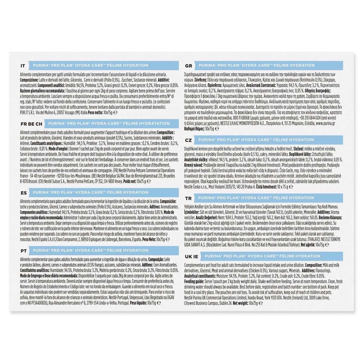 - ISFM uznává nutriční přínos společnosti PURINA k pohodě koček *V porovnání s kočkami, které ke granulím dostávají pouze vodu; pro příznivý účinek musí kočky denně přijmout alespoň 25 ml na kilogram tělesné hmotnosti. Prokazatelně zvyšuje celkový příjem vody a podporuje hydrataci. Zvyšuje ředění moči. Vynikající chutnost.