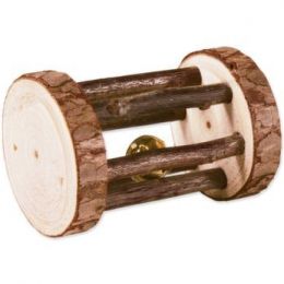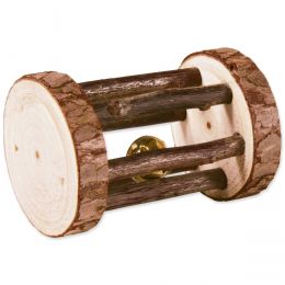 Dřevěný váleček s rolničkou pro moračata a králíky, dřevo s kůrou, ø 5 × 7 cm