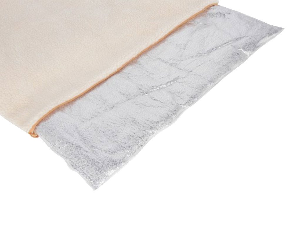 Podložka odrážející tělesnou teplotu a odpuzující chlad z podlahy, s protiskluzovou vrstvou. Vnější látková vrstva ze 100 % polyesteru je odnímatelná díky zipu, a je pratelná v pračce na 30 °C.