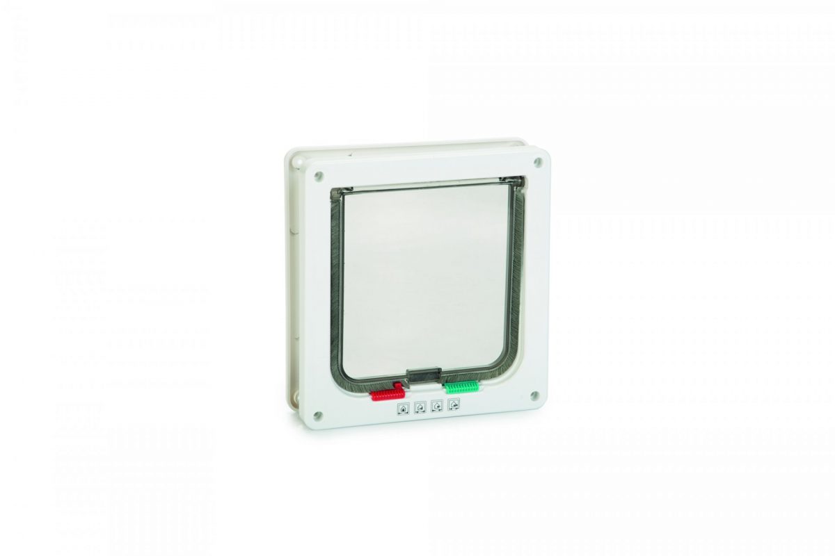 Tyto kočičí dveře mají 4polohový zámek: otevřeno, pouze dovnitř, pouze ven nebo zavřeno. Dveře obsahují průhlednou tichou klapku, která se zavírá pomocí magnetu. To udržuje klapku před větrem uzavřenou, a to i v otevřené poloze. Kartáč zajišťuje, že jsou dvířka vždy zcela zavřené. Snadná instalace.