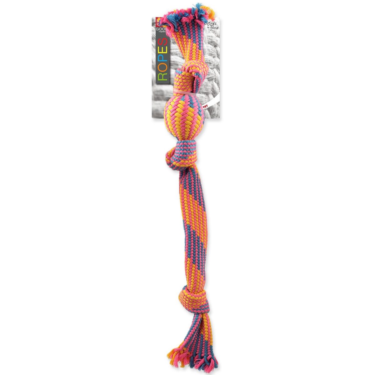 Přetahovadlo DOG FANTASY míč barevné vzor 2, 3 knoty - 50 cm