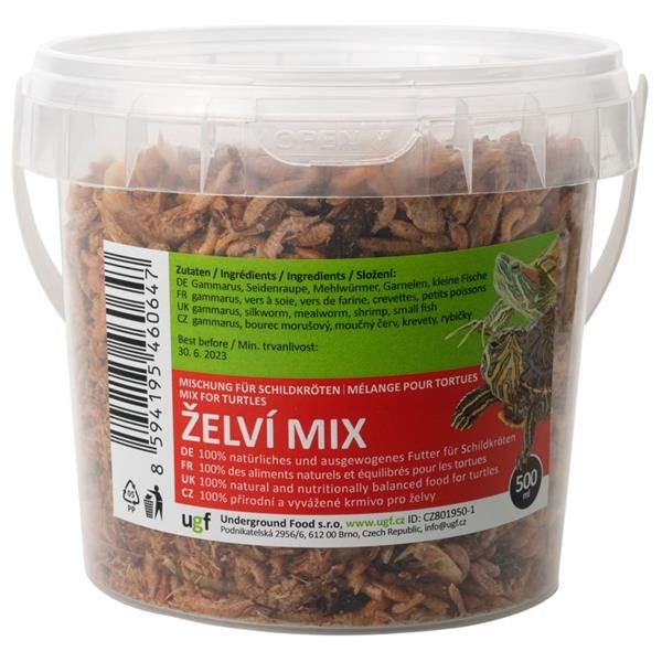 100% přírodní krmivo pro vodní želvy obsahující mix vodních živočichů pro pestrost a vyváženost jejich potravy. Obsahuje gammarus, bource morušového, moučného červa, krevety a rybičky.