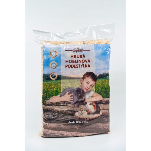 Hrubá hoblinová podestýlka je vyrobena ze smrku a borovice, nízká prašnost, šetrná k dýchacímu ústrojí a očím mazlíčka, vlhkost 10-12%. Vlastnosti: Neutrální vůně