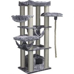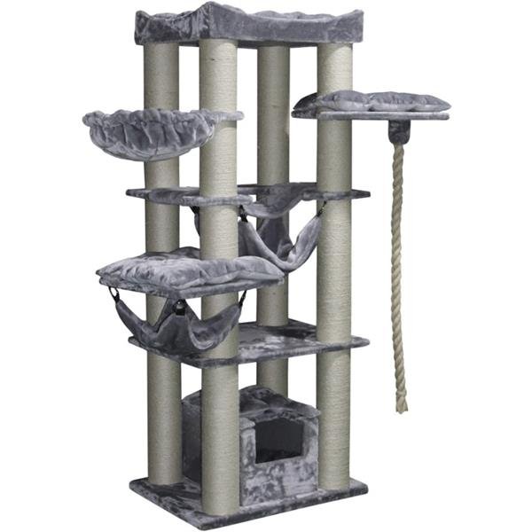 Stojí na základu o velikosti 60 x 80 cm a je vysoké 197 cm. Sloupy na škrábání jsou vyrobené ze sisalu a jsou mimořádně široké Ø 15 cm, a proto jsou velmi stabilní. Škrabadlo je vybaveno otevřenou kukaní, dvěma houpacíma sítěmi, závěsným polštářkem a mnohými dalšími ležícími plochami. Je také vybavený lanem dlouhým 1,2 m, které je stimuluje hraní.