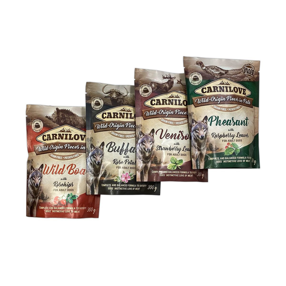 Kapsička pro psy Carnilove neobsahuje žádné obiloviny ani brambory. Masové kapsičky Carnilove jsou naloženy v paštice. Jedná se o kompletní krmivo pro psy. Kapsičky pro psy Carnilove Dog Pouch Paté lze zakoupit v 9 lahodných příchutích, které jsou obohaceny o různé bylinky, zeleninu a lesní plody.