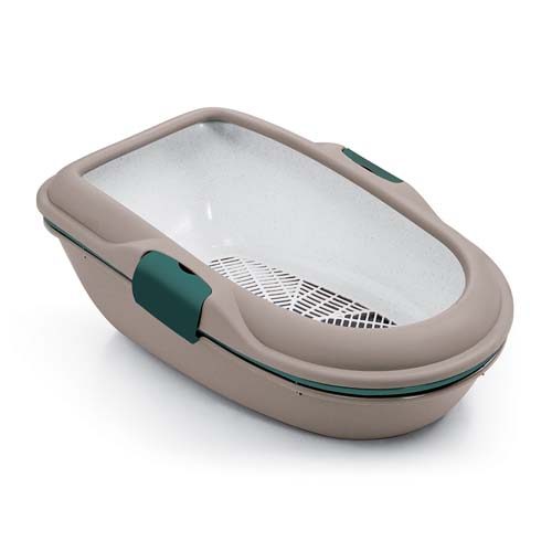 Toaleta pro kočky - kočičí WC Furba 3v1, nekrytá, 39 x 59 x 22 cm, popelavě hnědá/anglická zelená