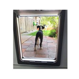 Dvířka pro psy Dog Mate 2-way Dog-Flap XL 2-cestná vhodná pro větší plemena psů, jako je labrador, německý ovčák a ostatní hafany s výškou ramen do 630 mm. Barva: hnědá