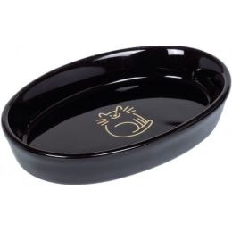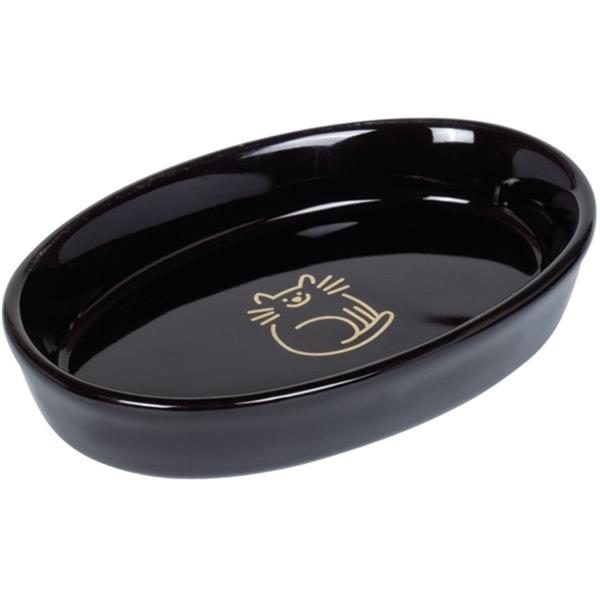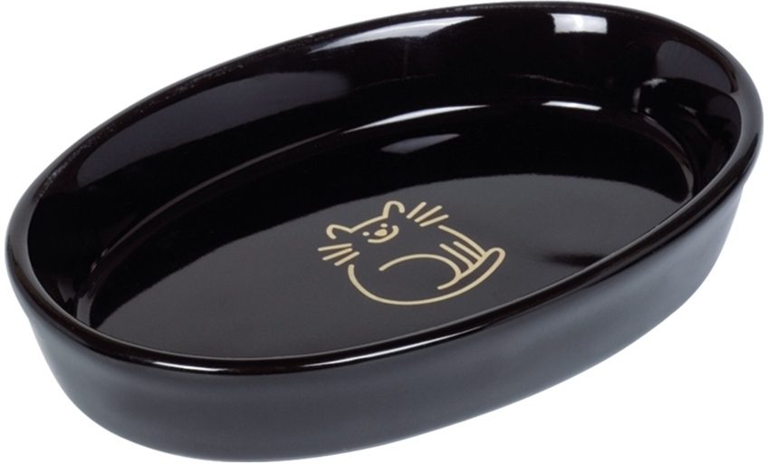 Černá keramická miska Nobby GOLDEN CAT oválného tvaru se zlatým kočičím dekorem vhodná jako základní vybavení vašeho domácího mazlíčka.