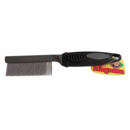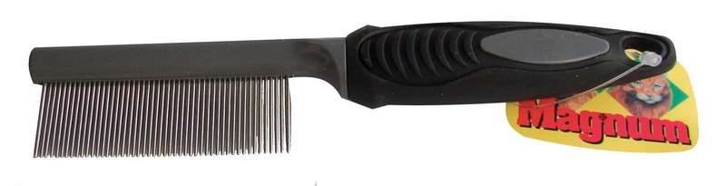 Hřeben s velmi hustými ocelovými hroty pro perfektní pročesání srsti a odstranění jemných nečistot. Velmi komfortní měkčená a neklouzavá rukojeť.