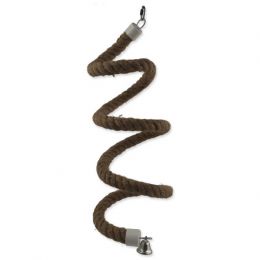 Závěsná hračka lanová spirála se zvonečkem vhodná pro střední a velké exotické ptactvo. Vyrobeno z juty, plastu a železa.