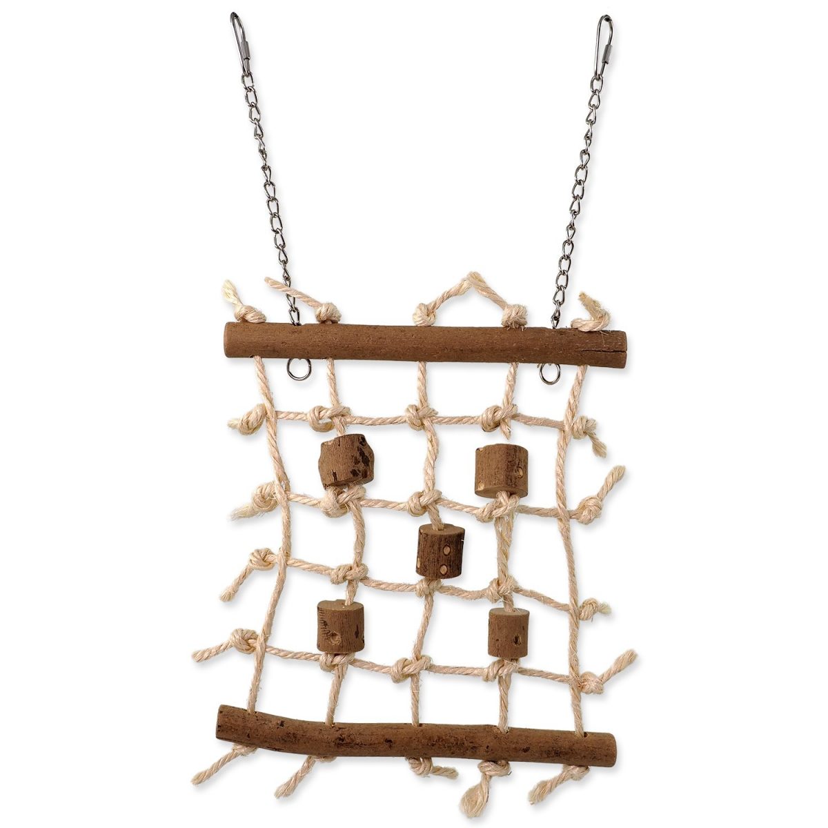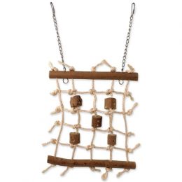 Závěsná čtvercová šplhací stěna s dřívky vhodná pro malé a střední exotické ptactvo. Z přírodních materiálů.