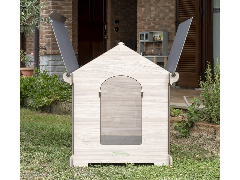 - Bouda vyrobena z HPL laminátu vyžaduje pouze velmi malou údržbu a snadno čistí pomocí otevírací střechy a vyjímatelného dna. Psí boudu můžete jednoduše umýt vodou a čisticími prostředky pro domácnost. Pouze je nutné se vyvarovat kyselin nebo alkalických roztoků, které by mohly poškodit povrch.