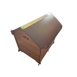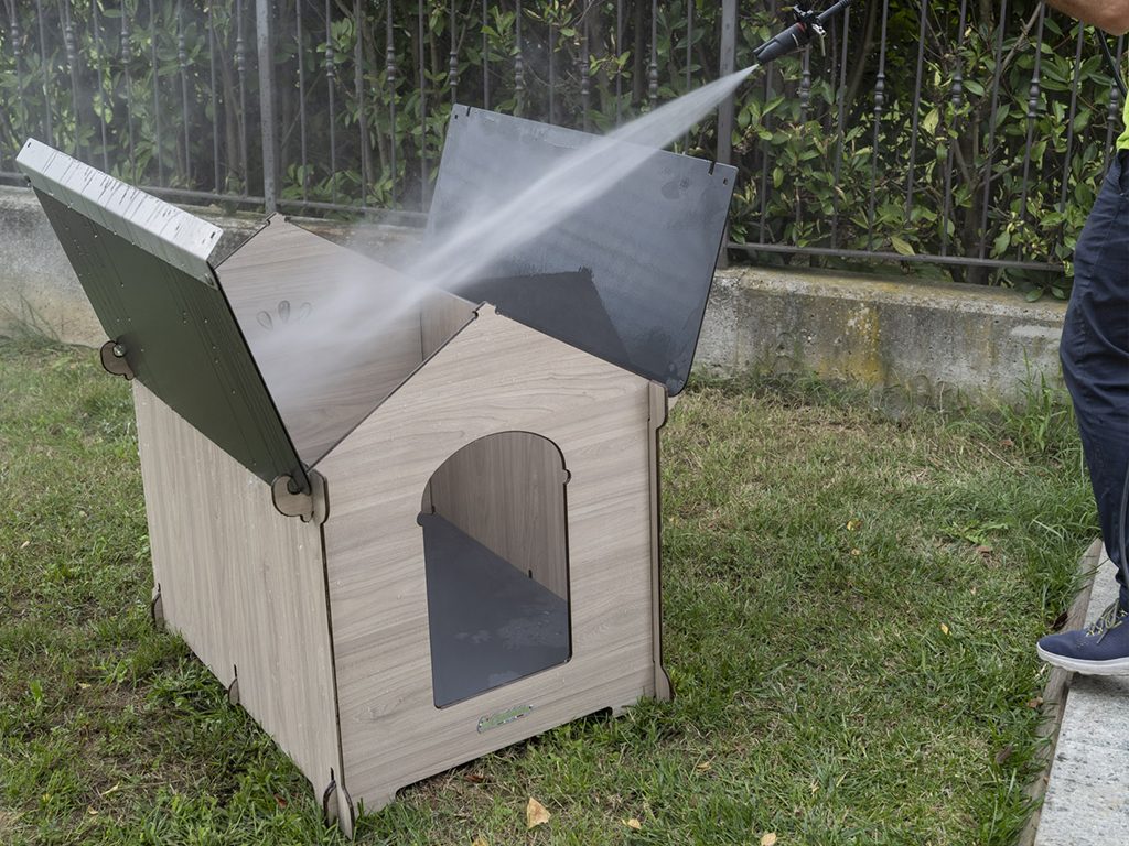 - Bouda vyrobena z HPL laminátu vyžaduje pouze velmi malou údržbu a snadno čistí pomocí otevírací střechy a vyjímatelného dna. Psí boudu můžete jednoduše umýt vodou a čisticími prostředky pro domácnost. Pouze je nutné se vyvarovat kyselin nebo alkalických roztoků, které by mohly poškodit povrch.