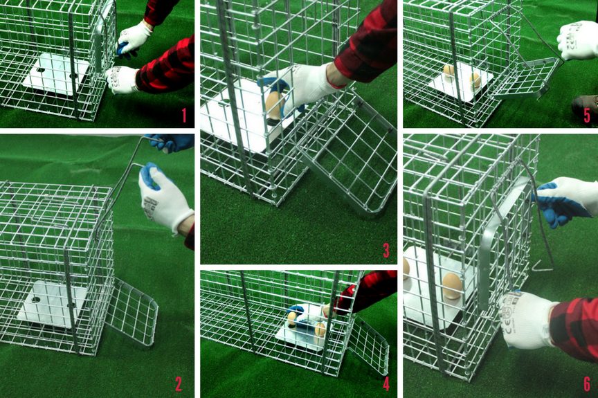 - Aby se na sklopec nepřenášel lidských pach, který může škodná zvěř vycítit a může ji tak odradit vstoupit dovnitř klece, doporučujeme využívat při manipulaci s pastí ochranné pomůcky (rukavice, kalhoty, košile s dlouhými rukávy), které zajistí snížení rizika přenosu lidského pachu na sklopec.