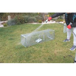 Nová konstrukce velice kvalitní pozinkované pasti s ochranou proti korozi, s dvěma vstupy k umístěné nástraze a s inovativním pružinovým uzavíracím systémem most, s pojistkou proti otevření a s extra silnou konstrukcí, tloušťka drátu 3,3mm.