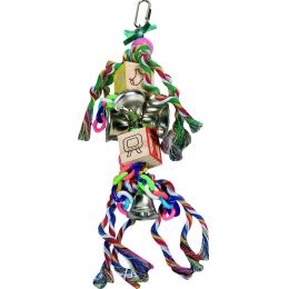 Různobarevné lano k zavěšení klece. Jednotlivá vlákna a zvonečky jsou perfektní hračkou pro vaše ptáky.