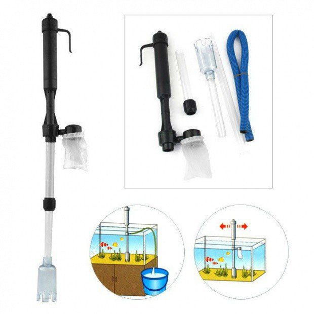 - Odkalovač nasává vodu s nečistotami ze dna, přičemž máme na výtoku nasazenou hadici a nasátá voda je odváděna pryč z akvária.
