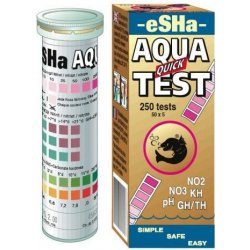Se soupravou eSHa Aqua-Quick-Test můžete jedním rázem změřit hodnoty, které jsou kritické pro dobrou kvalitu vody: pH (kyselost), KH (karbonátová tvrdost), GH (celková tvrdost), NO2 (obsah dusitanů), NO3 (obsah dusičnanů) a Cl2 (obsah chlóru).