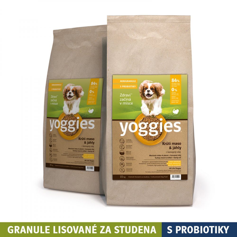 Yoggies MINIGRANULE s krůtím masem a jáhly 30kg + dárek Kostičky masové 20ks