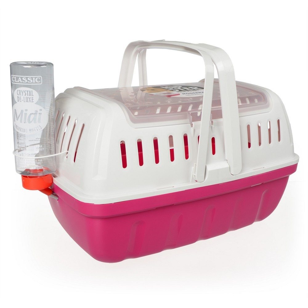 Vzdušná přepravka pro hlodavce s vrchním otevíráním zajišťuje snadný přístup k Vašemu mazlíčkovi. Barva: růžová, Materiál: Plast