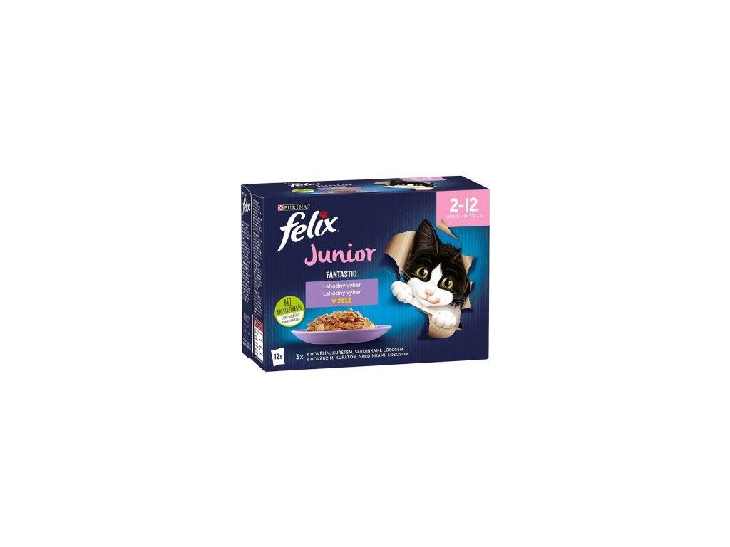 FELIX Fantastic Junior Multipack 12x85g hovězí/kuře/sardinky/losos v želé