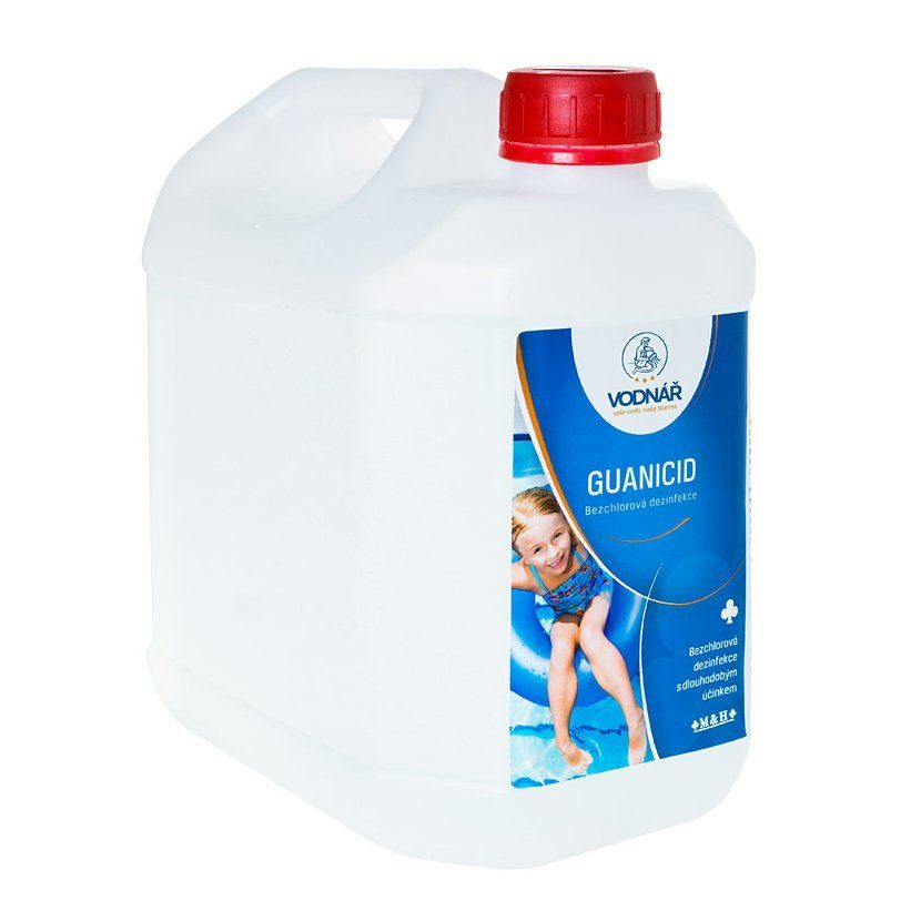Guanicid se vyznačuje baktericidním a algicidním účinkem, jehož předností je multifunkčnost. Přípravek zabraňuje růstu řas a patogenních mikroorganizmů, oxiduje organické nečistoty zanesené do vody koupajícími a projasňuje vodu jejich vyvločkováním. Voda ošetřená Guanicidem nenese negativa jako u chlorových přípravků, tj. zápach, reakce na citlivou pokožku. Přípravek lze kombinovat s chlorovou dezinfekcí, pokud není původní látka ve vodě obsažena.