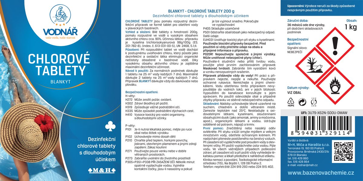 PARAMETRY PRODUKTU VODNÁŘ CHLOROVÉ TABLETY 1KG