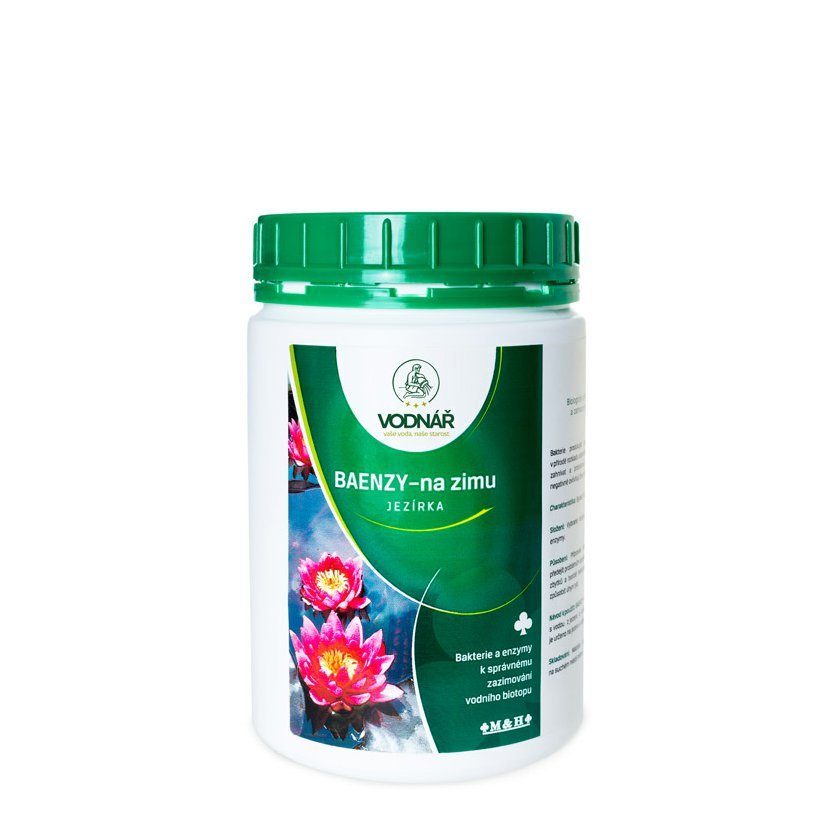 Vodnář Baenzy na zimu je biologický přípravek pro odbourání nadměrného množství organických látek a zamezení produkce jedovatých plynů pod ledem v zimních měsících.