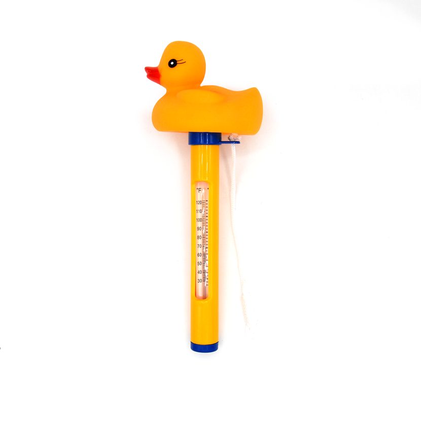 Teploměr se zvířátkem kačenka je bazénové teploměr měřící teplotu v rozsahu 0 až 50 stupňů Celsia. Dekorativní provedení se žlutou kačenkou plovoucí nad hladinou. Teploměr je možné uchytit pomocí malého lanka.