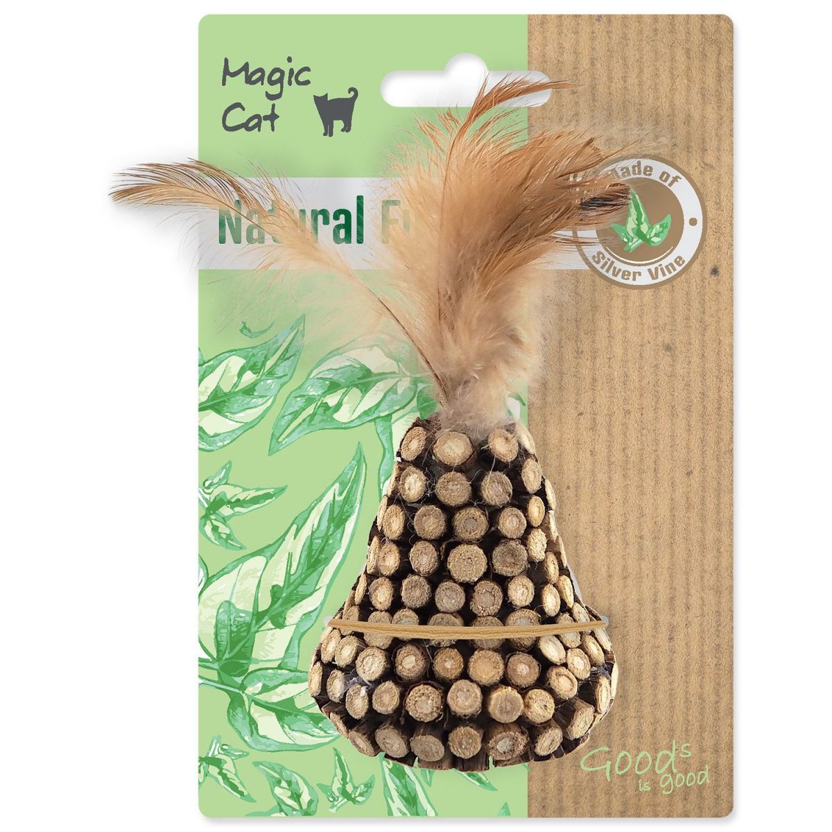 Hračka MAGIC CAT Natural Fun kužel s přírodními pírky a oblepené dřevem 13cm