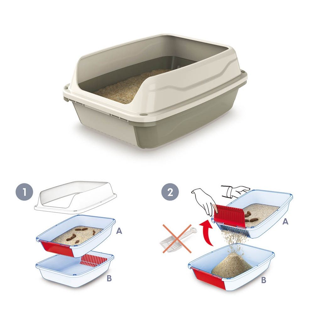 S inovativním systémem prosévání podestýlky, díky bočnímu integrovanému sítku prosejete podestýlku a nečistoty zůstanou uvnitř toalety, které poté jednoduše vyhodíte.