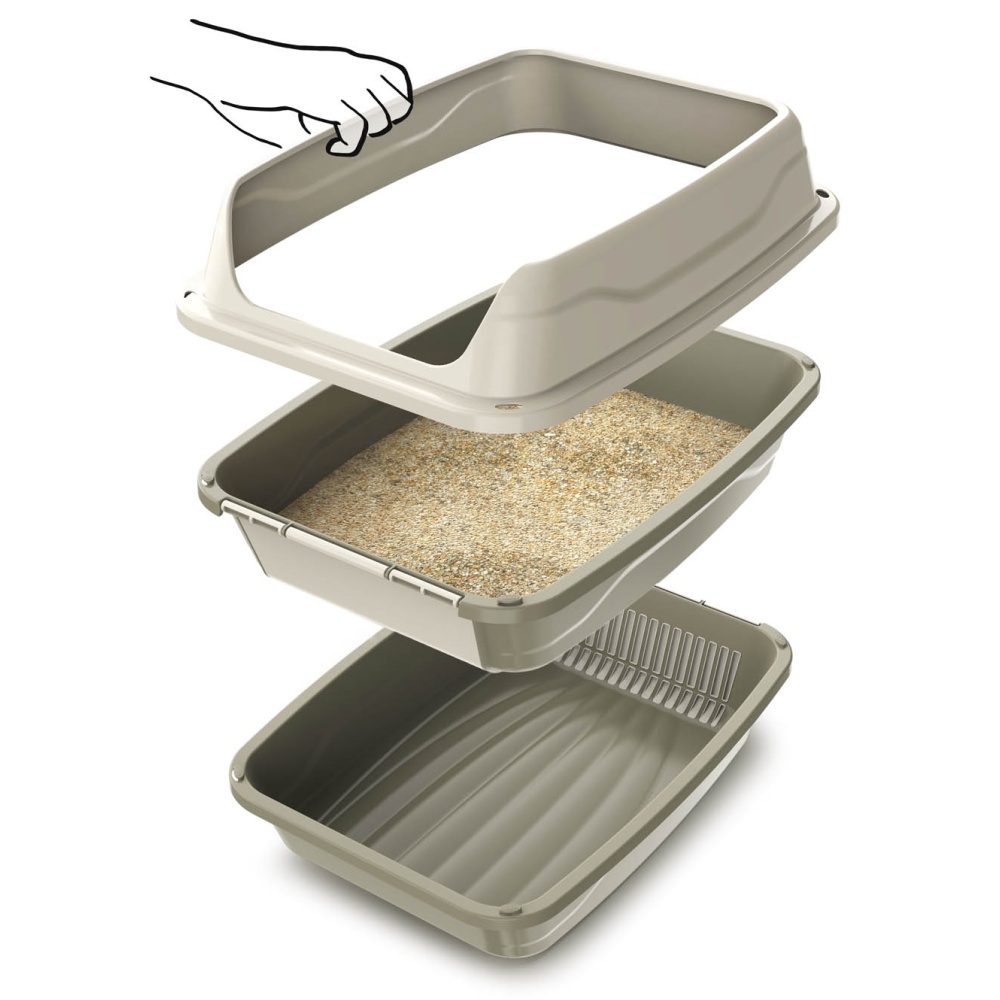 Otevřená, prostorná toaleta pro kočky s vysokým okrajem z kvalitního odolného plastu. Vlastnosti: S okrajem